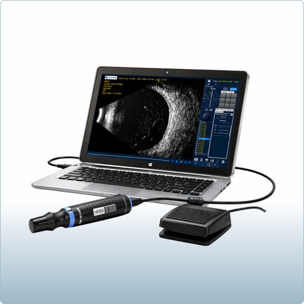 Keeler B Scan Plus comes with software installation, a USB stick, a probe holder,